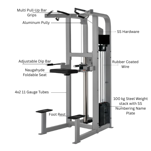 Built from heavy-duty steel tubing, the machine delivers excellent stability and long-lasting durability, even under continuous gym use. The electrostatic powder-coated finish ensures a premium look with resistance to scratches and corrosion. Its weight-assisted mechanism allows users to adjust resistance levels according to their strength, providing a safe and progressive training experience.
